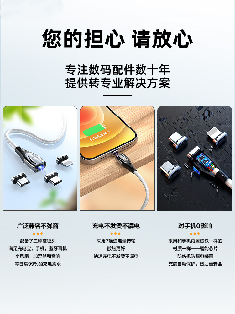 Magnetic Attraction data line Strong magnetic application Huawei 66w Charging wire instrumental magnetic magnet mobile phone 6a Fast charge Apple 8 Android three-in-one 5a Super flashback typec Xiaomi vivo type oppo6