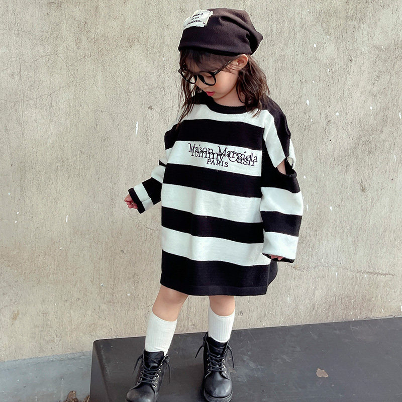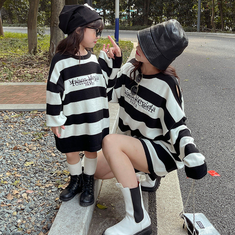 Yang Mi same style parent-child sweater fried street mother and daughter dress spring girl loose pullover striped sweater spring and autumn new style