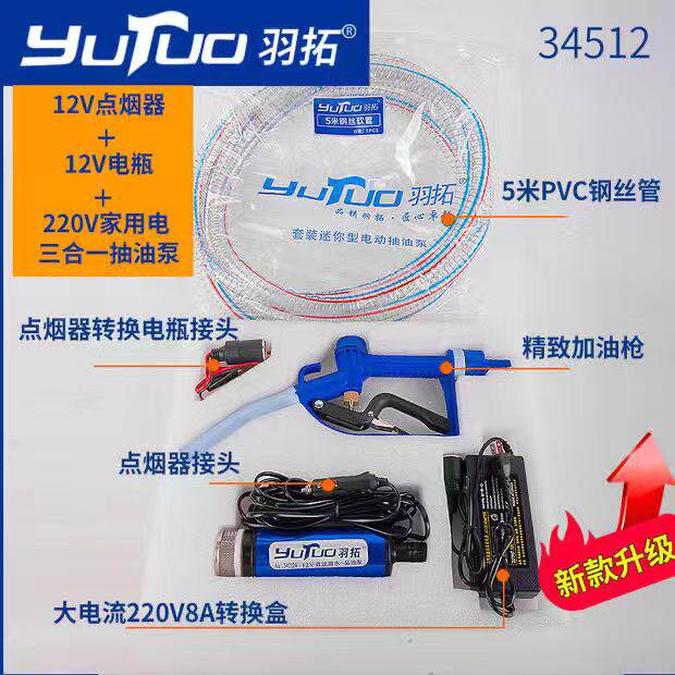 Yutuo oil pump 12v car pump cigarette lighter fuel pump 220v household diesel pump oil barrel dedicated