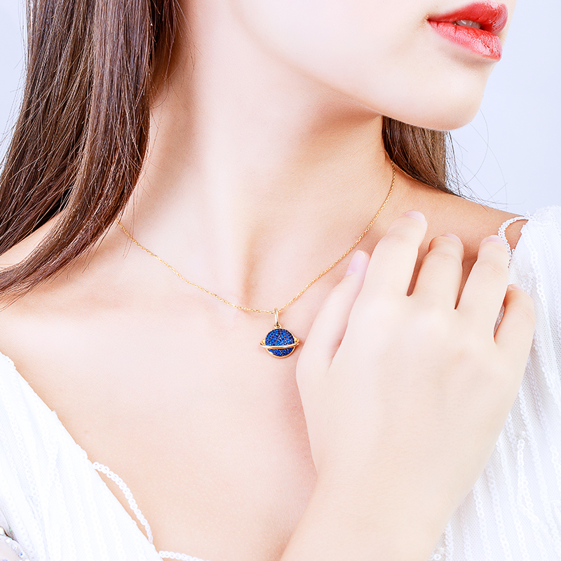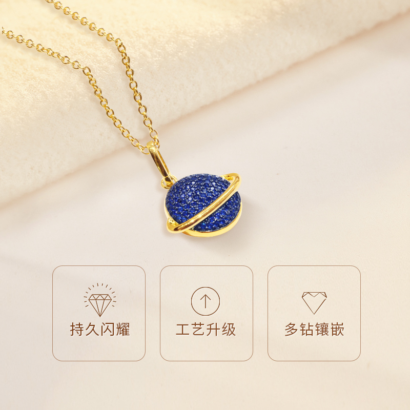 (China Gold) Zhenshang Silver Planet Necklace Valentine's Day Necklace Design Clavicle Chain Necklace for Girlfriend
