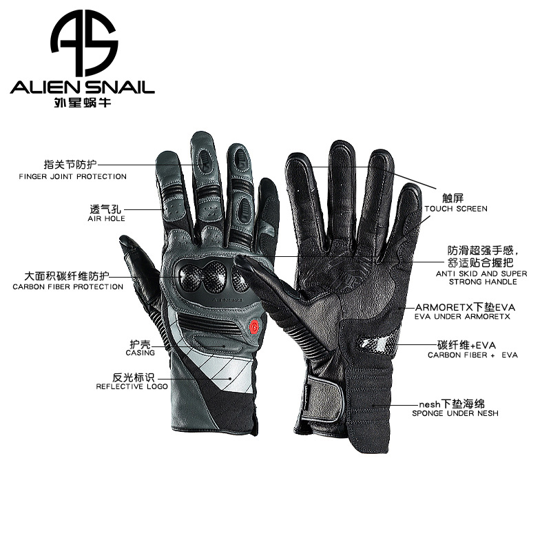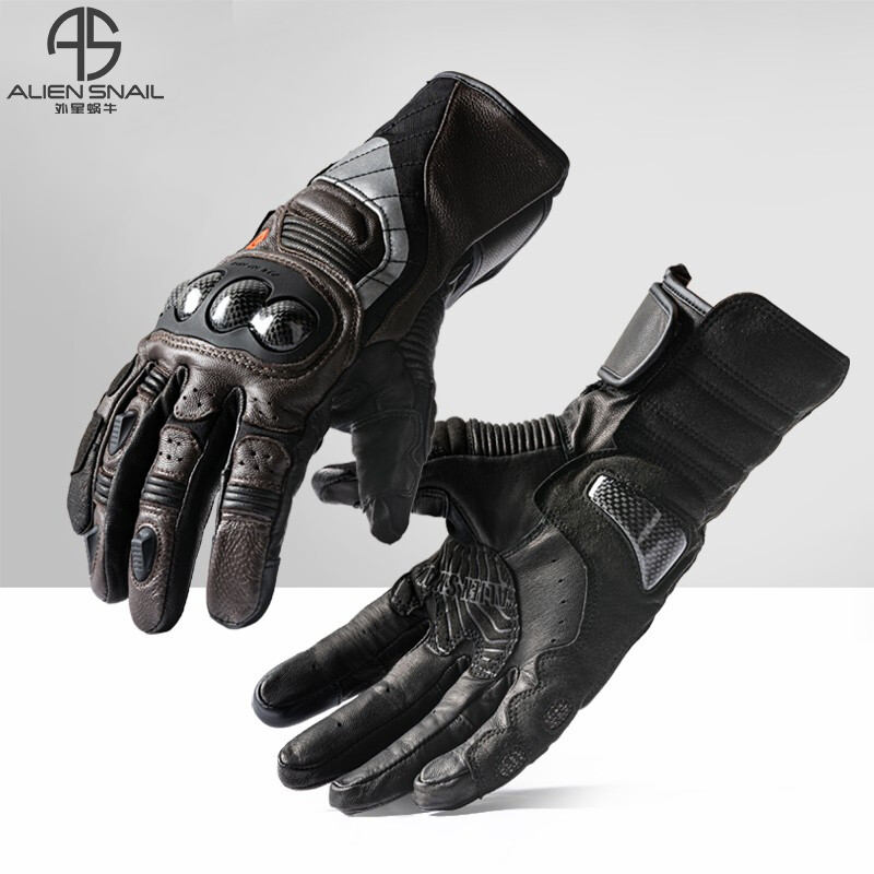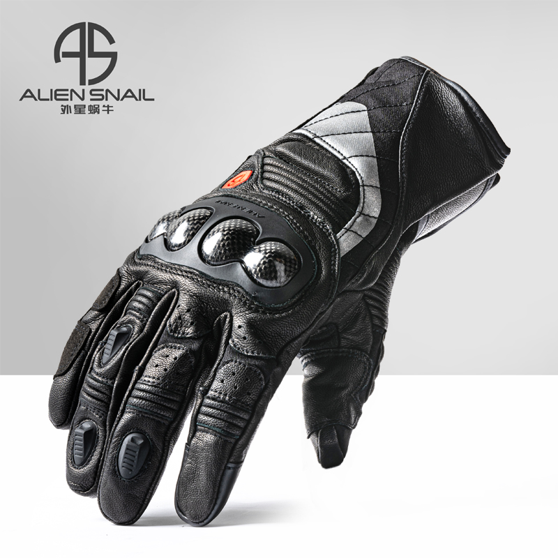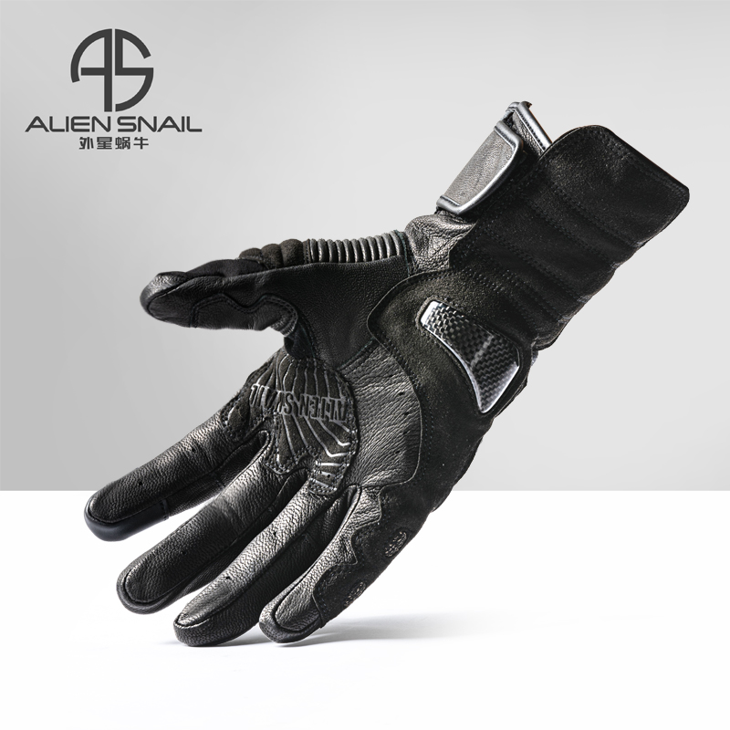 Alien Snail AT90 Rally Locomotive Goat Leather Gloves All Finger Carbon Fiber Maintenance Shell Anti-Touch Screen Rider Gloves