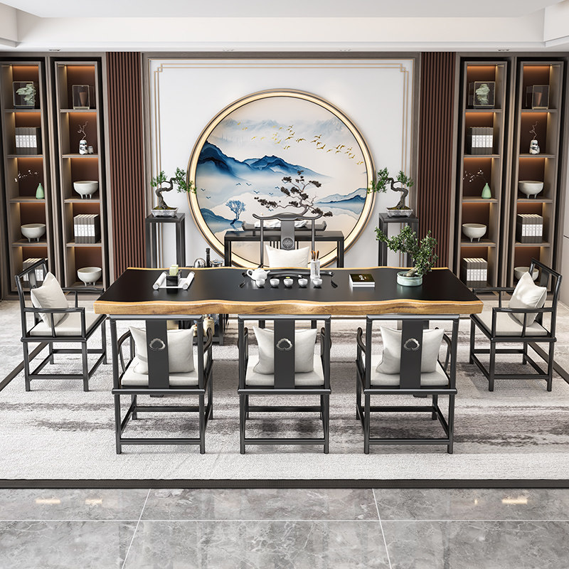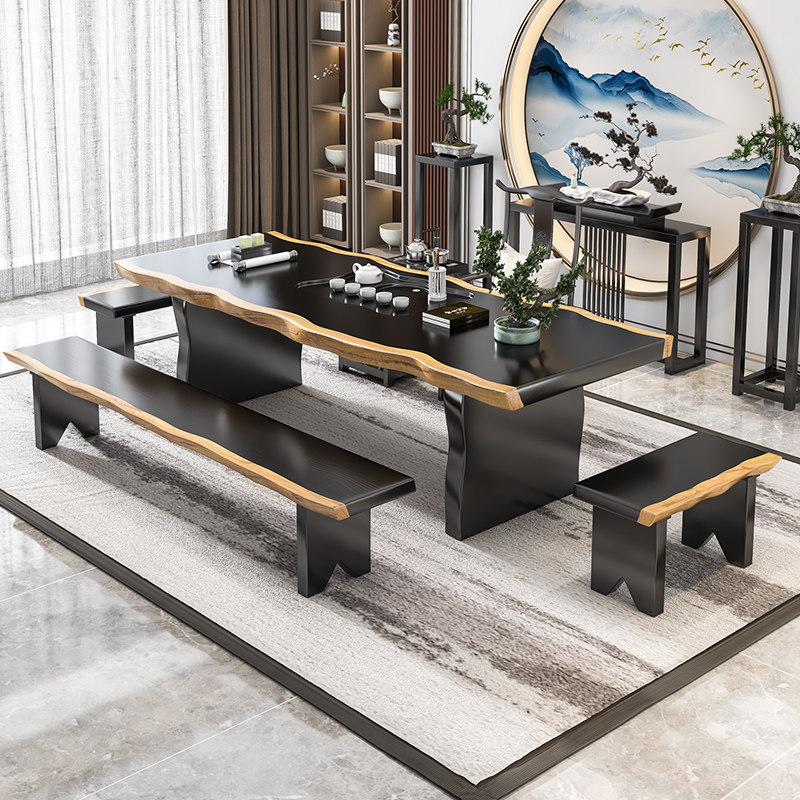 New Chinese solid wood tea table Zen whole board table long tableBuilding tea table Kungfu tea table boss tea table tea table
