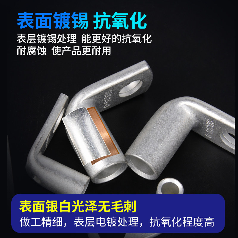 Cornered 90 degrees bending copper nose L type tin 10 16 25 35 - 8 50 cold - pressed terminal brass ear