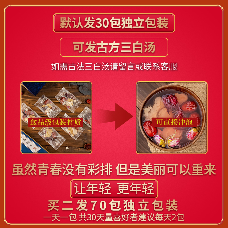 Initial results (buy one hair 30 packs) Improve dark yellow (buy two rounds of 70 packs) Whitening beautiful (buy three rounds of 100 packs)