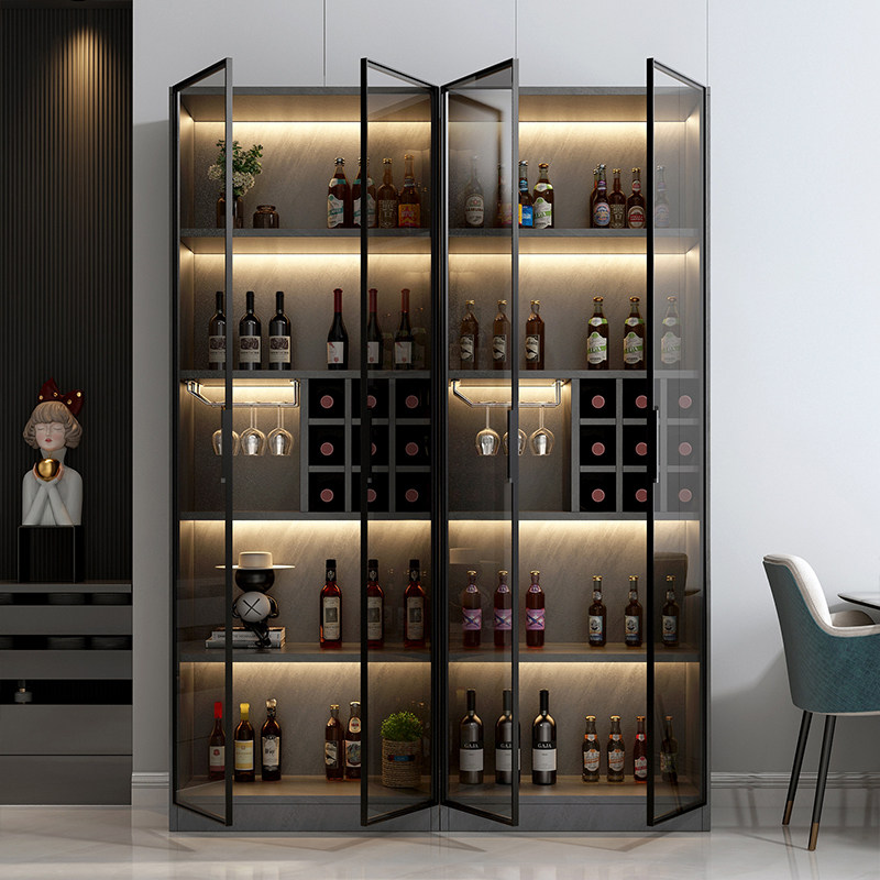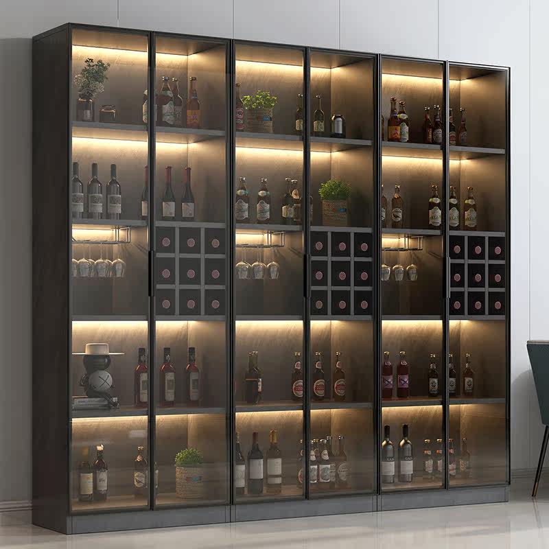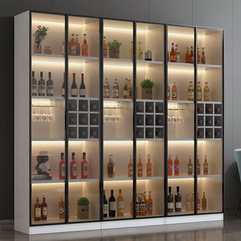 High-grade glass door wine cabinet simple modern solid wood display cabinet living room against the wall storage cabinet custom light luxury dining cabinet