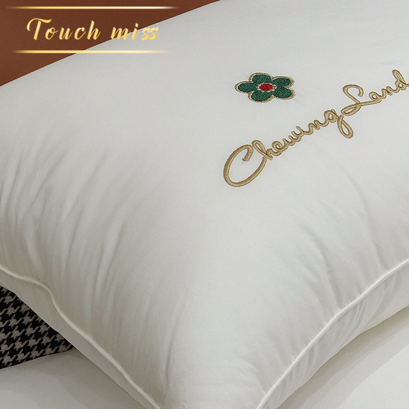 TOUCH MISS Tencel Cotton Embroidery Pillow 3D Down Filled Pillow Pair Pair of Neck Pillow