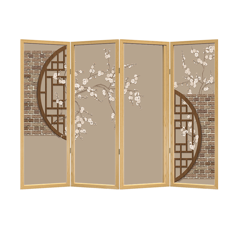 New Chinese-style landscape screen partition living room hotel simple modern custom solid wood folding mobile folding screen