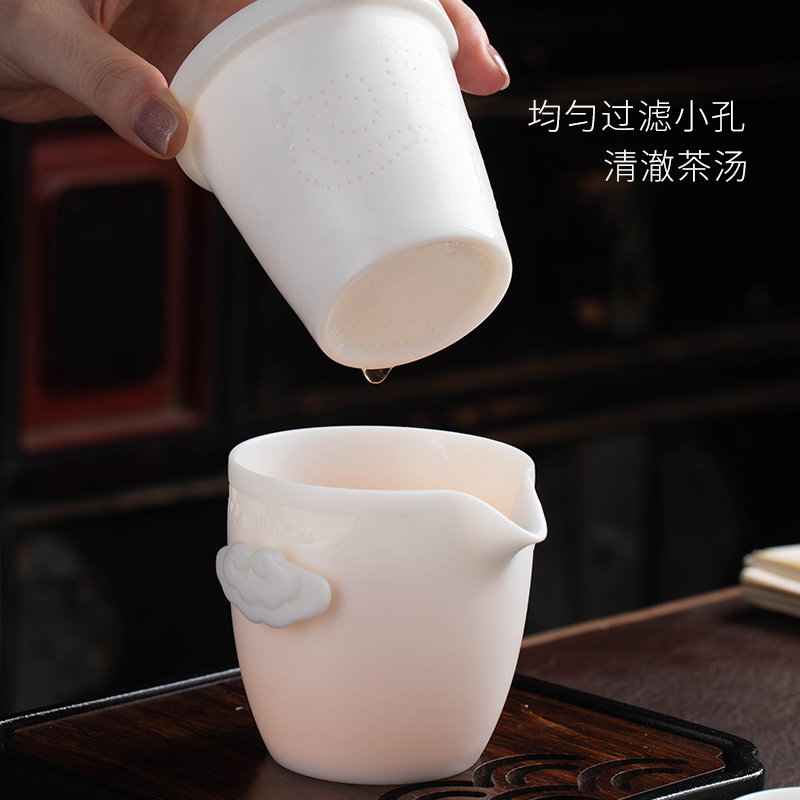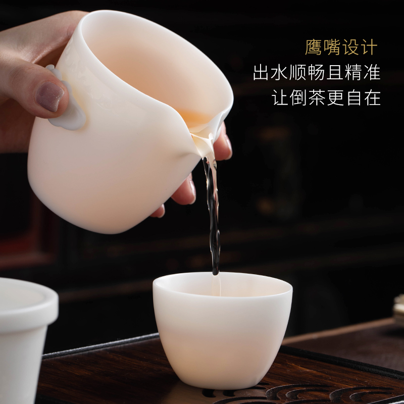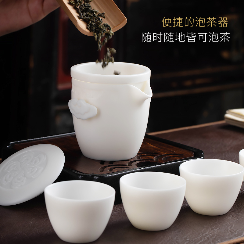Travel portable bag Gongfu tea with quick passenger cup Dehua goat fat jade Porcelain One Pot of Four Travel Tea Set Express Guest Cup