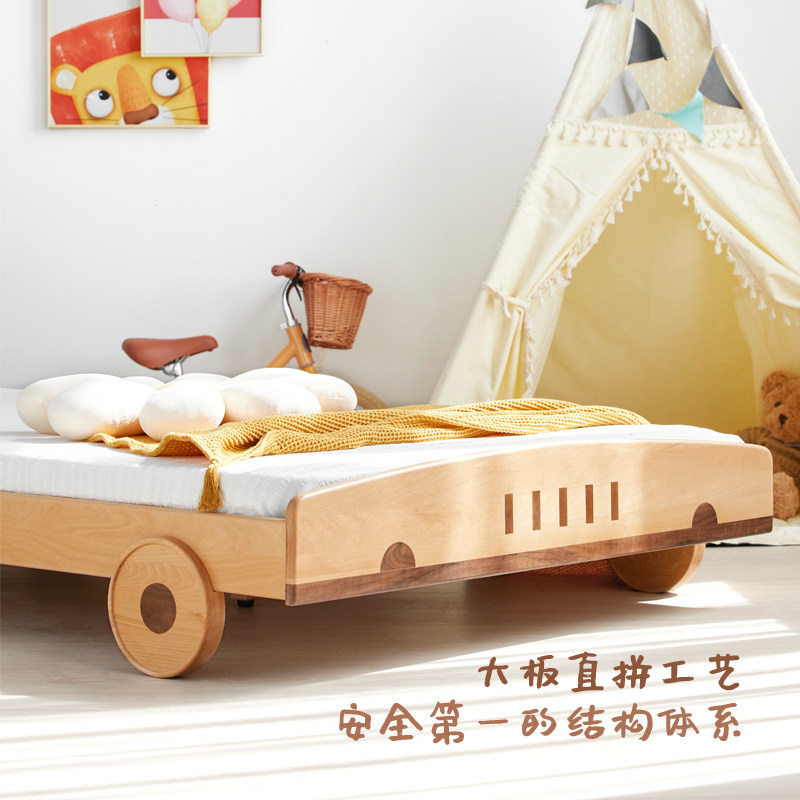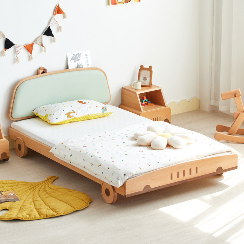 Beech wood-Elle bed Car A paragraph (lath) (original wood color light blue 5510-18) - beech wood-car bed A with the Sherlinic Gate C3006 mattress (children) 8cm -