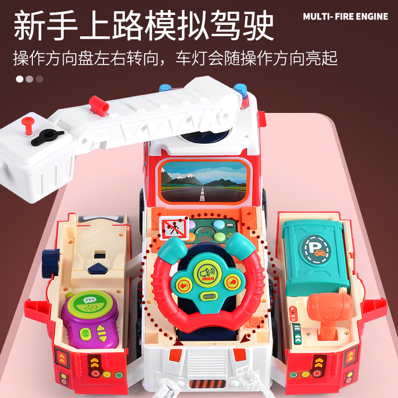 Versatile emulated steering wheel toy 3-6-year-old boy Puzzle Deformation Fire Engineering Police Car Model