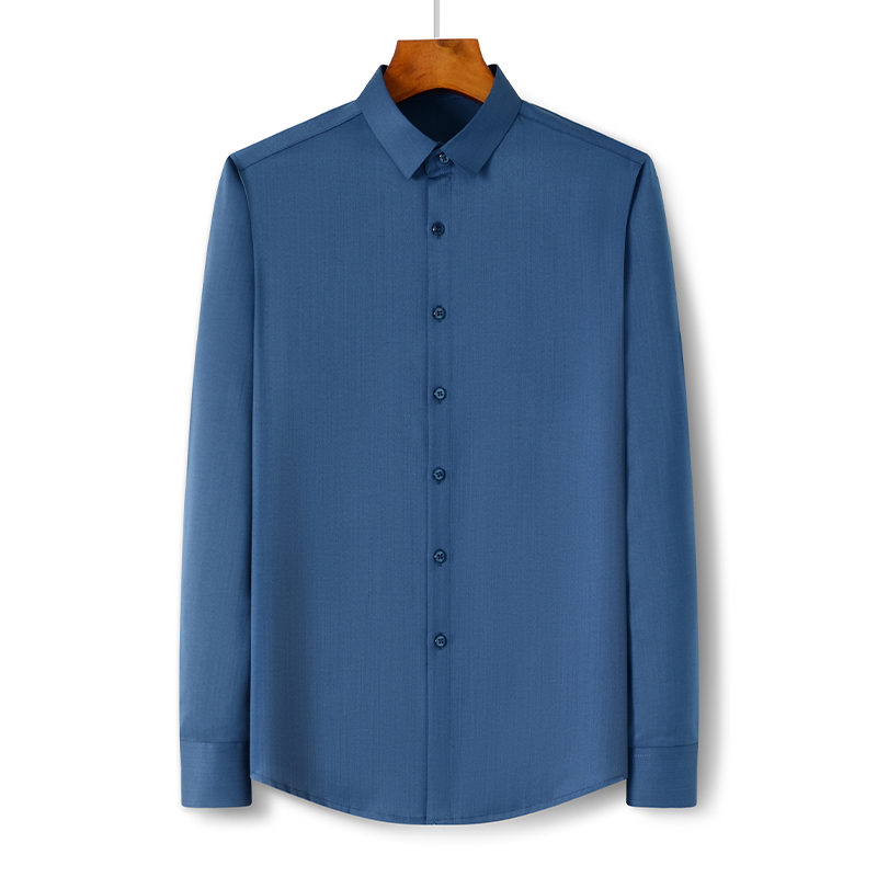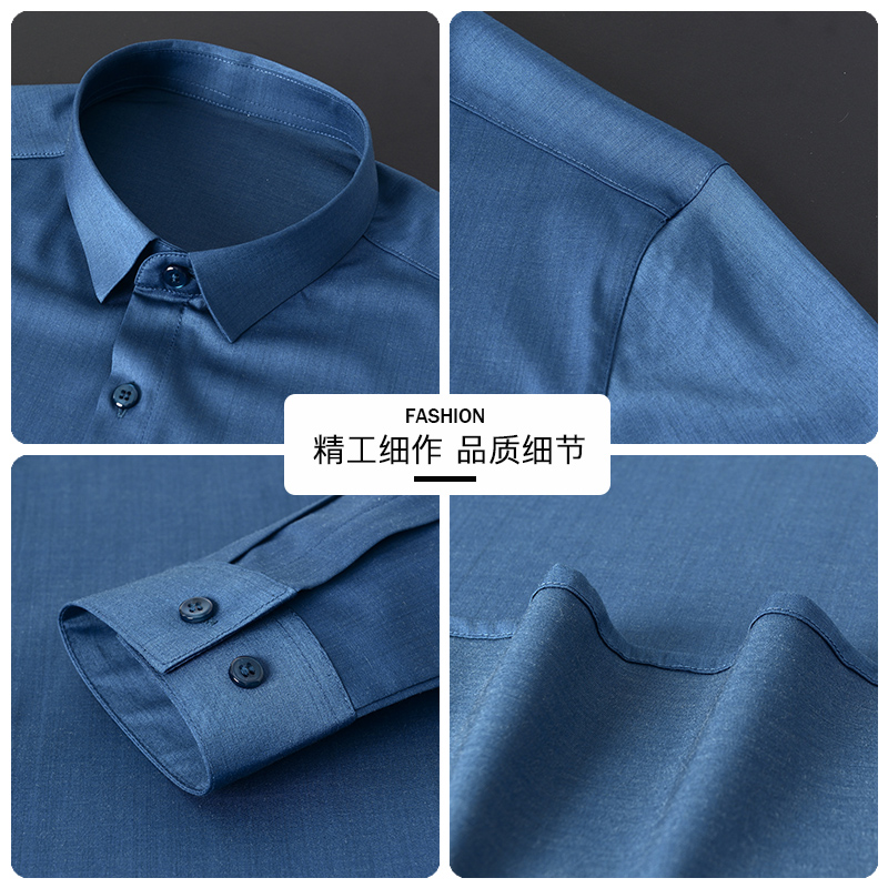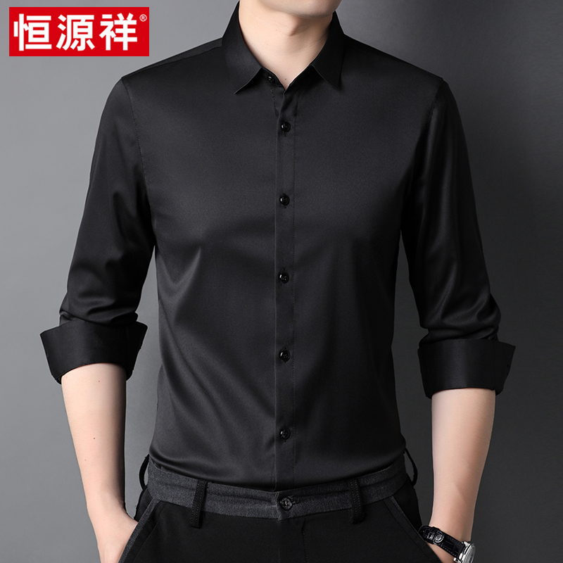 Hengyuanxiang Mulberry Silk Square Collar Long Sleeve Shirt Free Ironing Anti-Wrinkle Solid Color Dad Shirt Business Casual Autumn Top