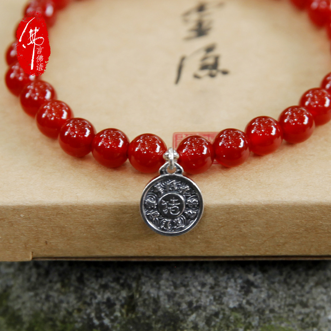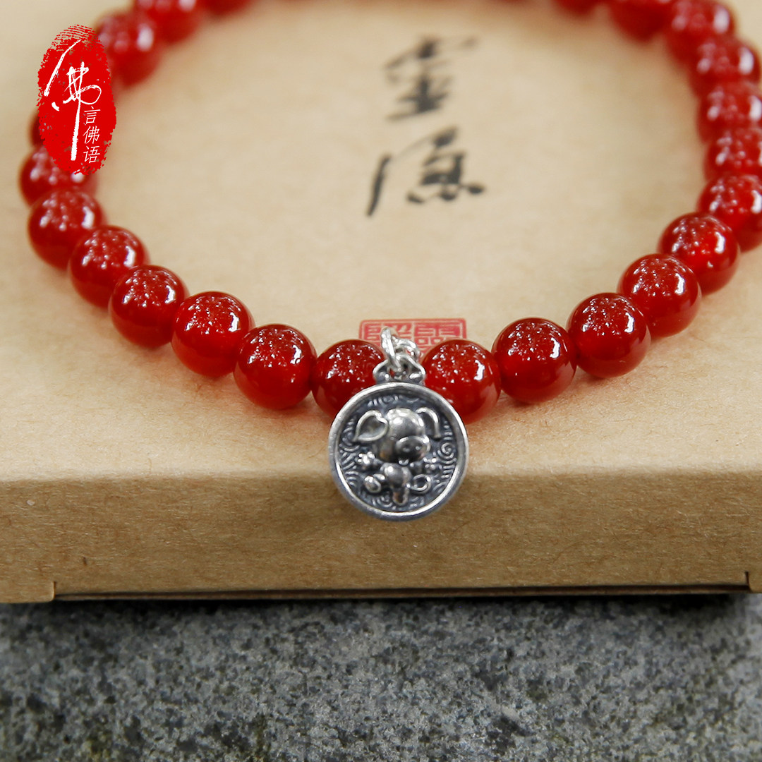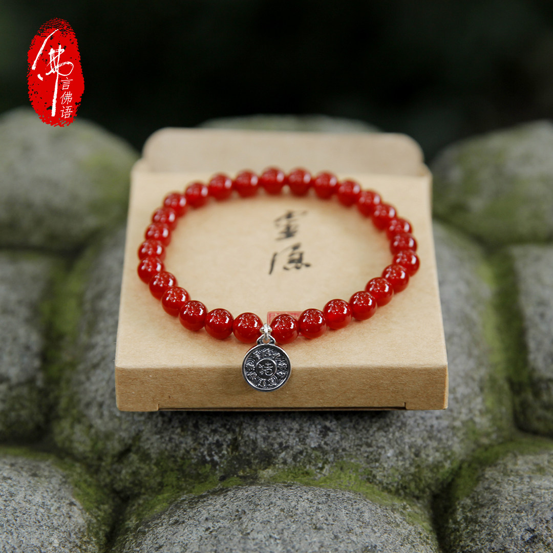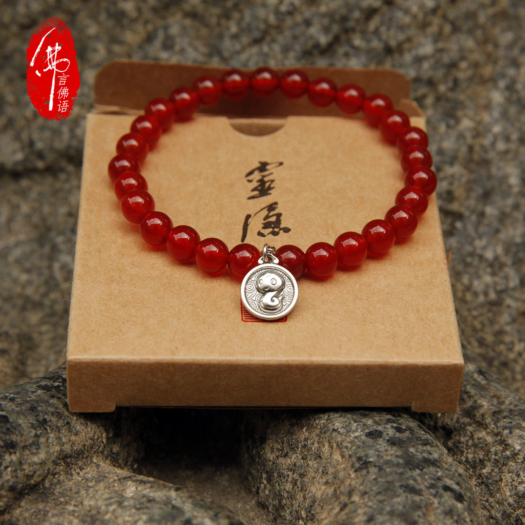 Buddha's words and Buddha's words Hangzhou Linglingyin Circulation Office on behalf of the twelve zodiac red agate silver accessories red rope bracelet