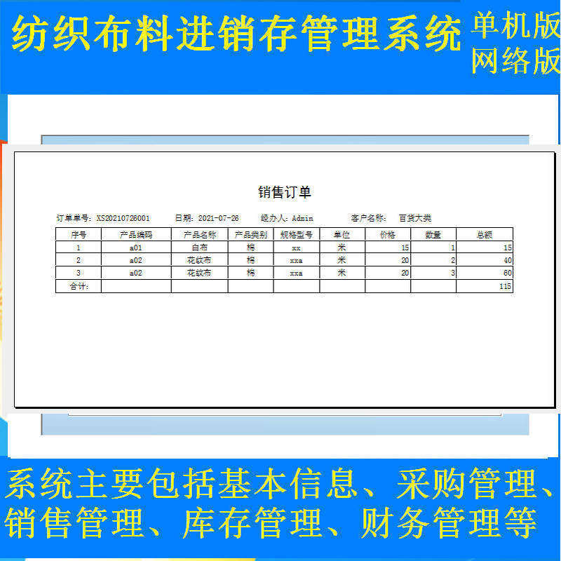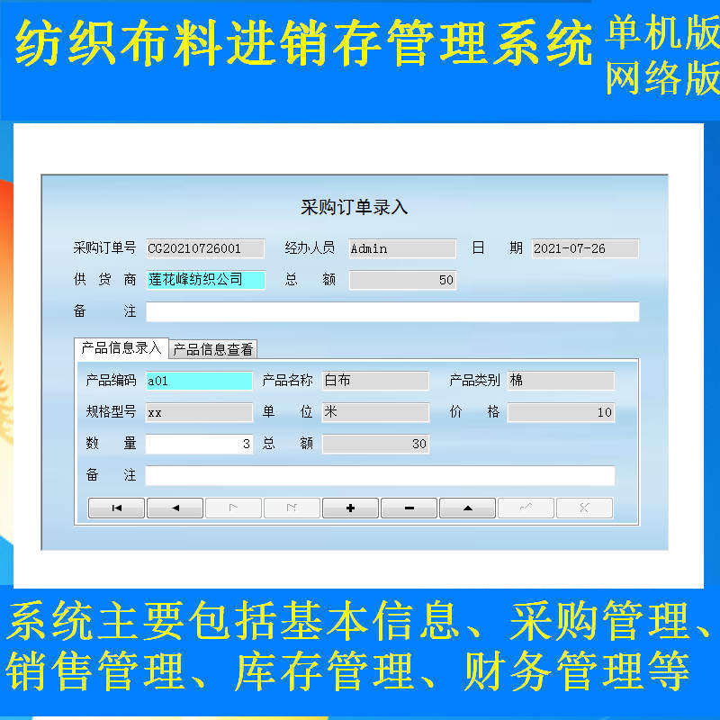 Textile Fabrics Import and Marketing Management System Software Procurement Sales Finance Order Entry Shipping Register Payment Slips