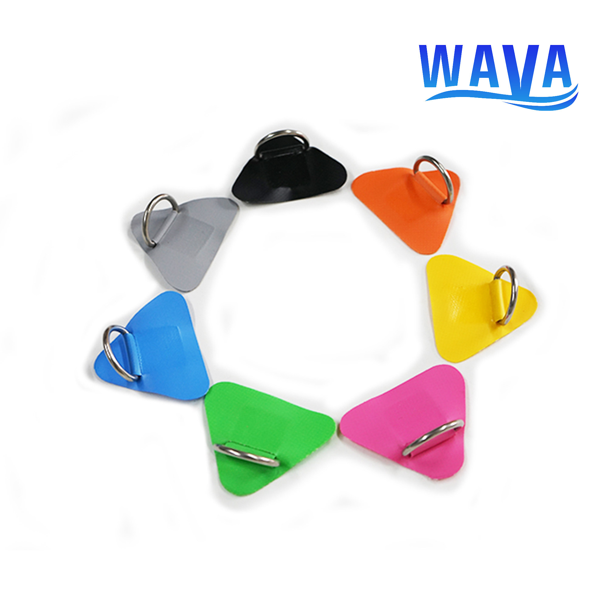 Color pvc patch stainless steel triangle D-ring buckle multi-color optional with adhesive surfboard rubber boat buckle