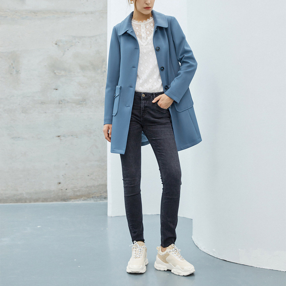 Face-of-the-face temperament The long version of the wind clothes lady 2022 New Spring Dress Lady Brief single row Withholding Temperament Commuter Coat