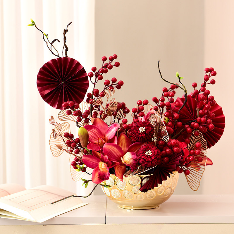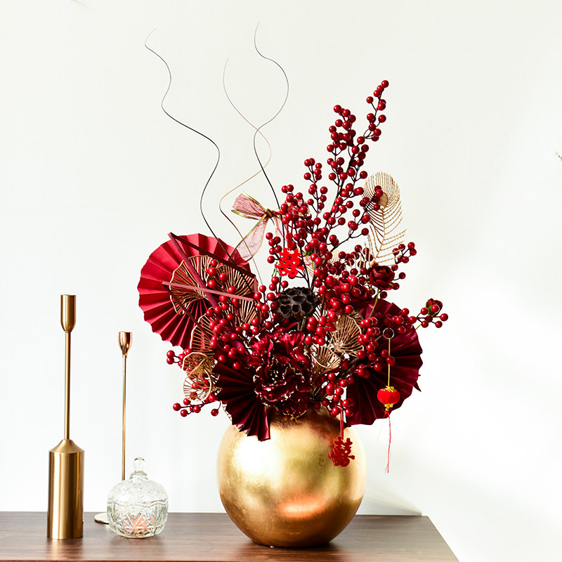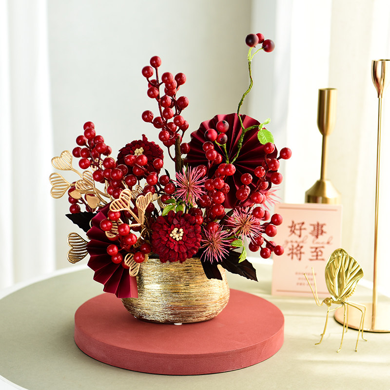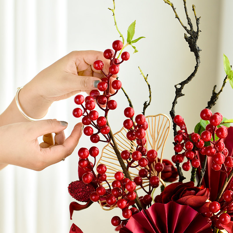 Fortune fruit red fruit simulation flower fake flower large decoration living room TV cabinet decoration flower wedding high-end decorative flower art