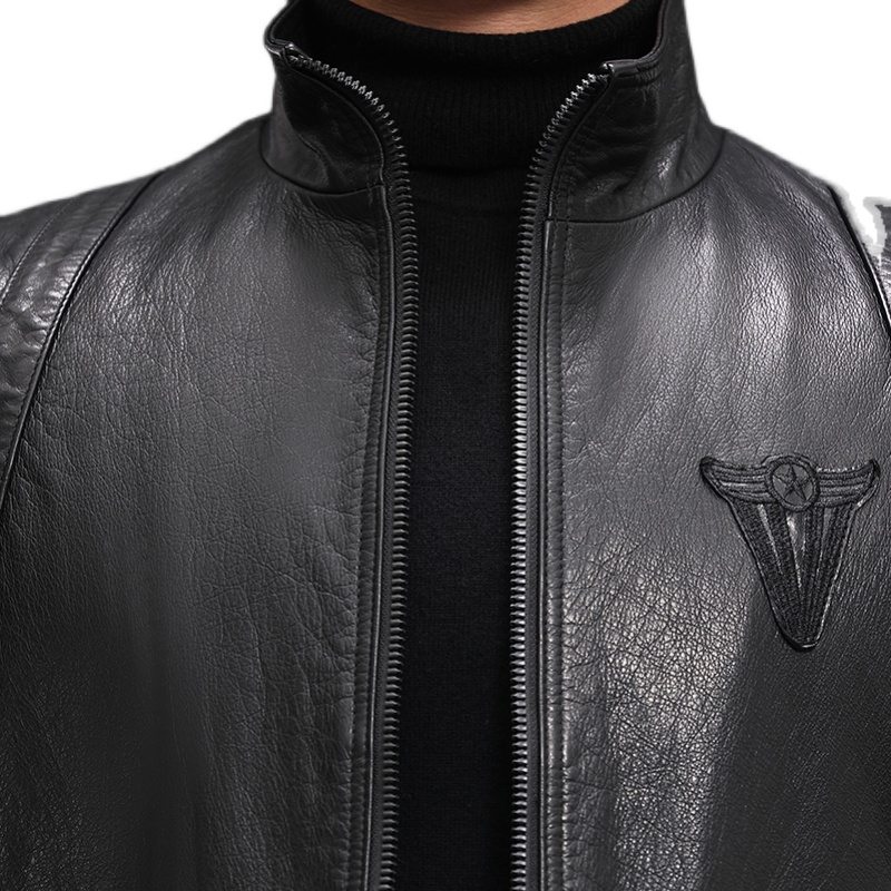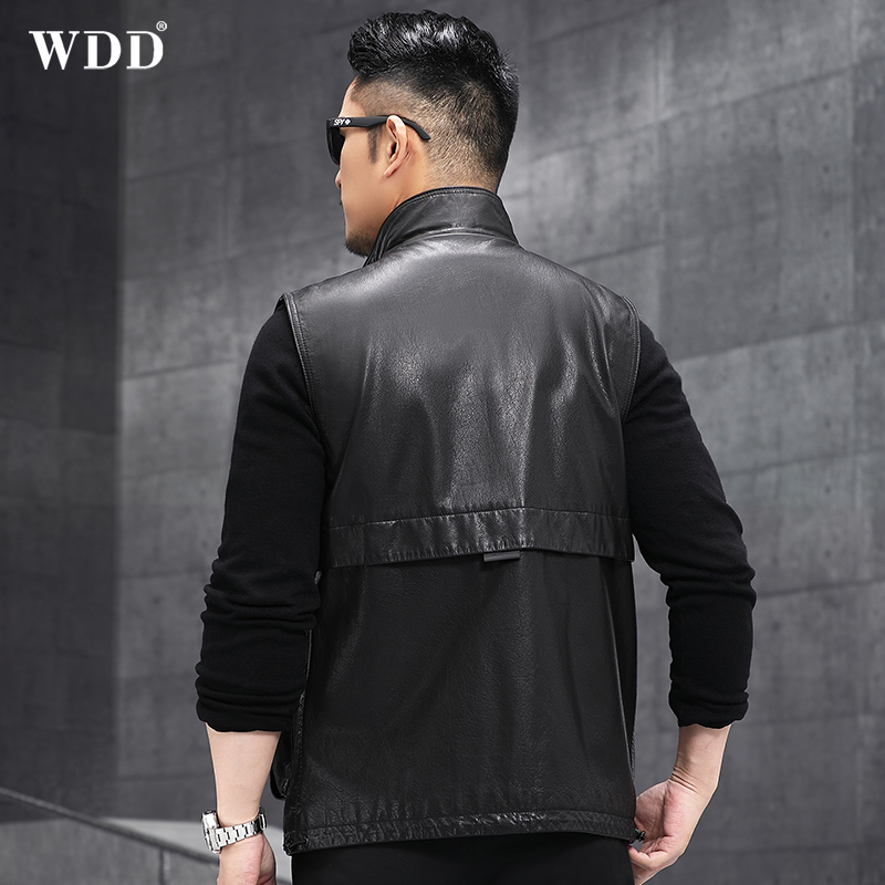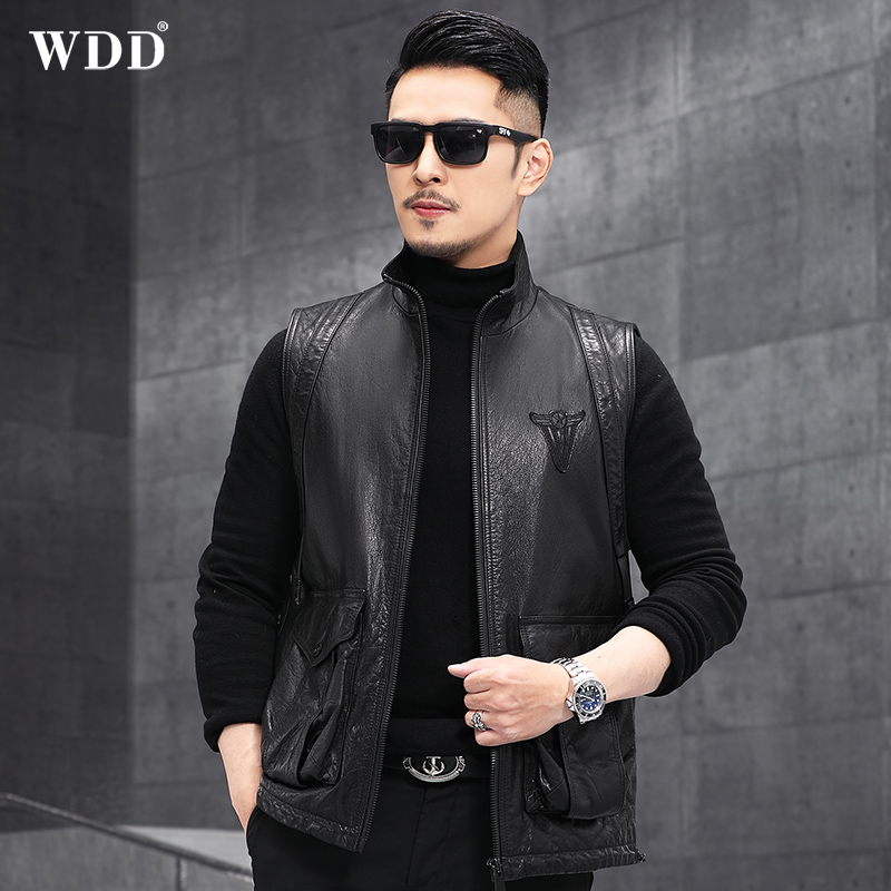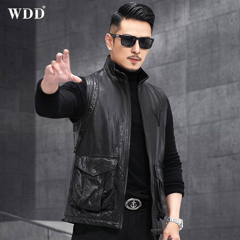 Men Henning genuine leather leather jacket Short-collar cow leather jacket in manmade waistcoat Vest Handsome air trendy thin jacket