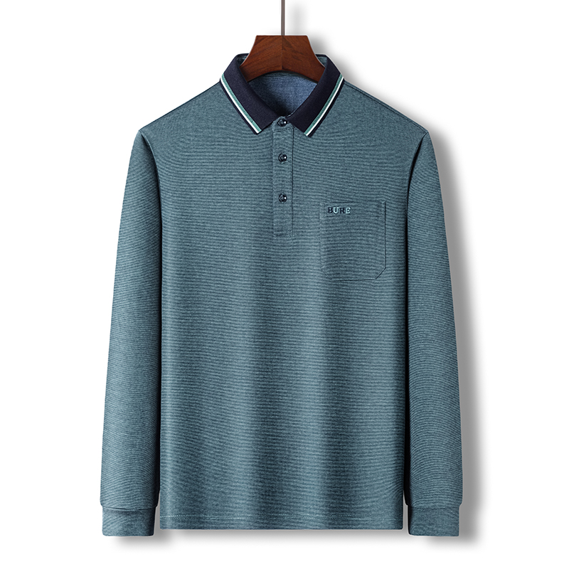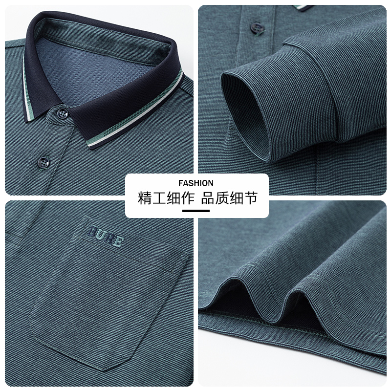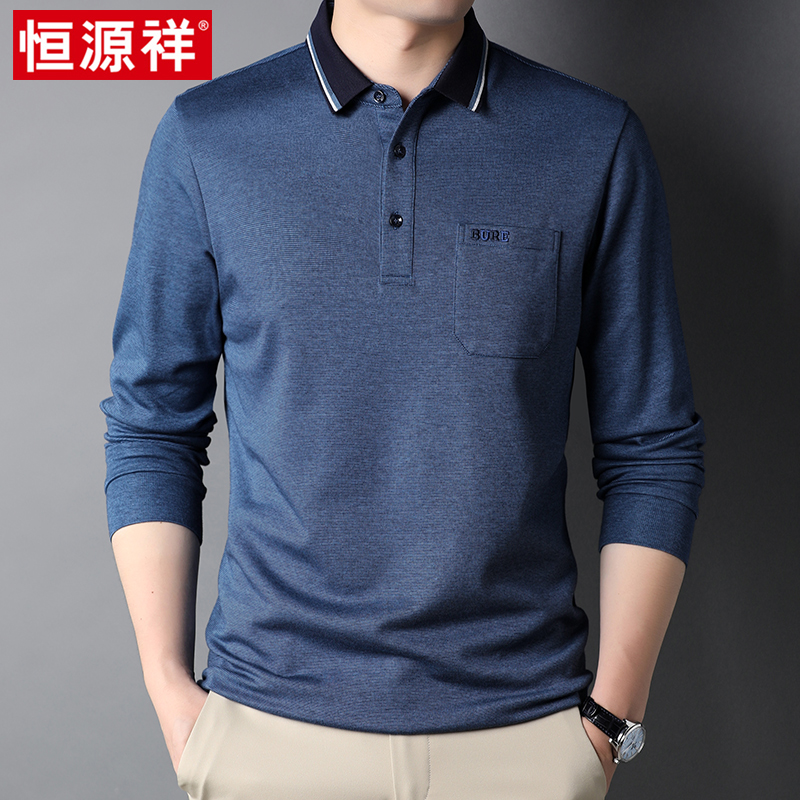 Hengyuanxiang men's long-sleeved T-shirt real pocket lapel polo shirt solid color middle-aged dad autumn casual inner wear - Taobao