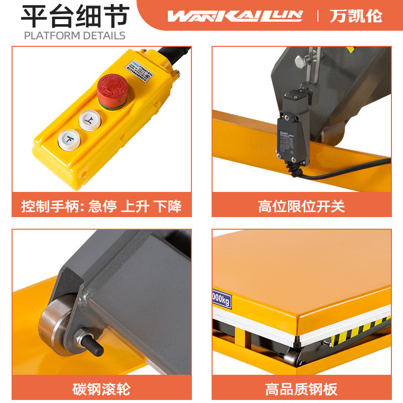 Wan Kailun hydraulic lift platform car 2 tons fixed scissor lift mobile small electric lift freight elevator