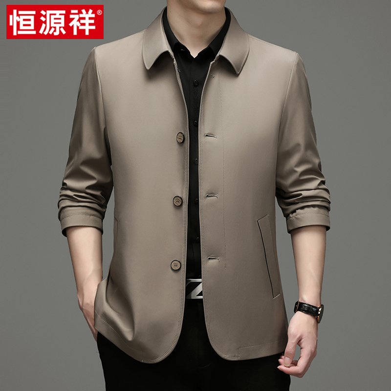 Hengyuanxiang middle-aged and elderly short windbreaker autumn men's jacket business casual dad wear solid color loose coat