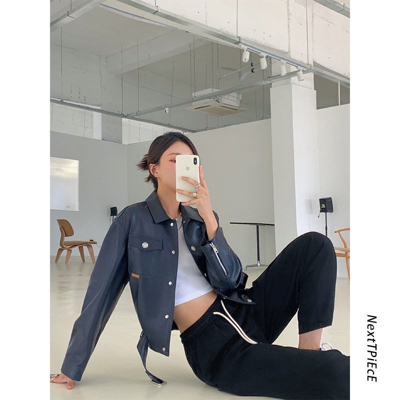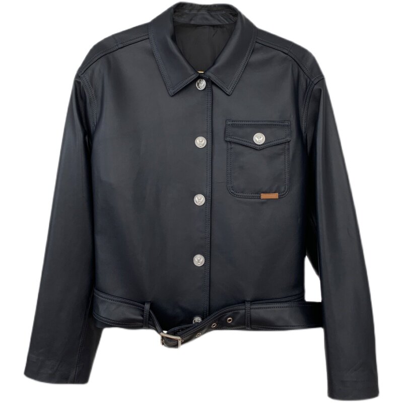 2021 new imported leather coat jacket woman short leather jacket spring autumn and body leather sheep peeler car