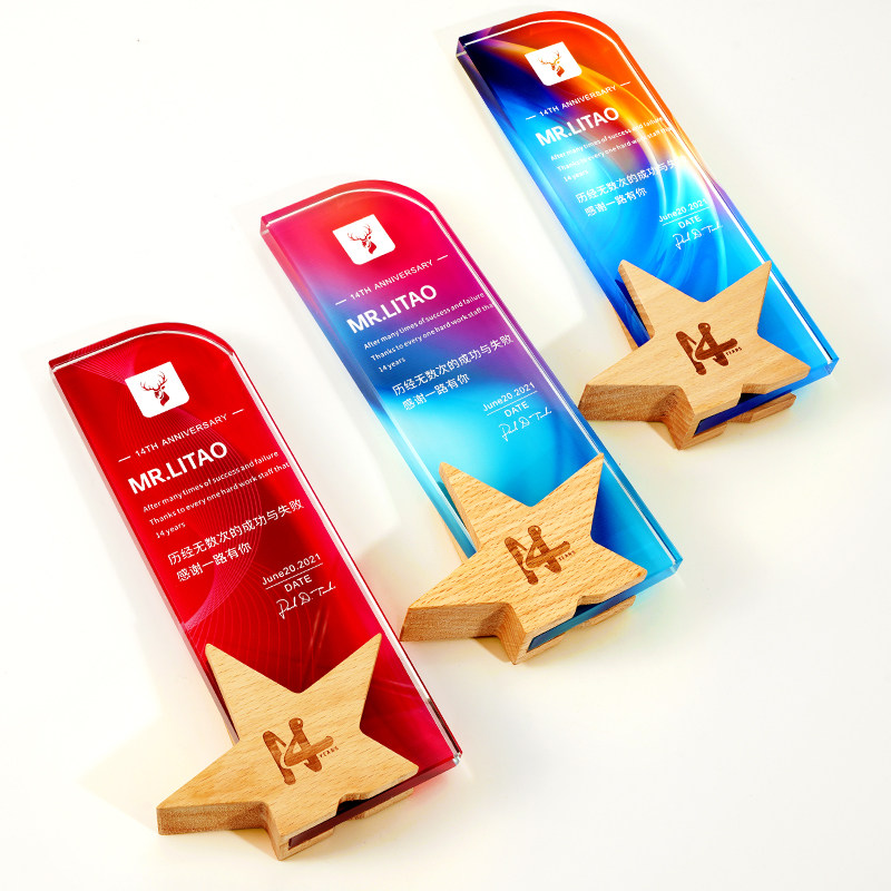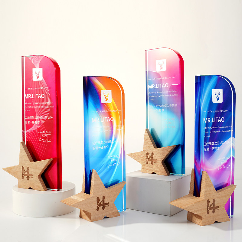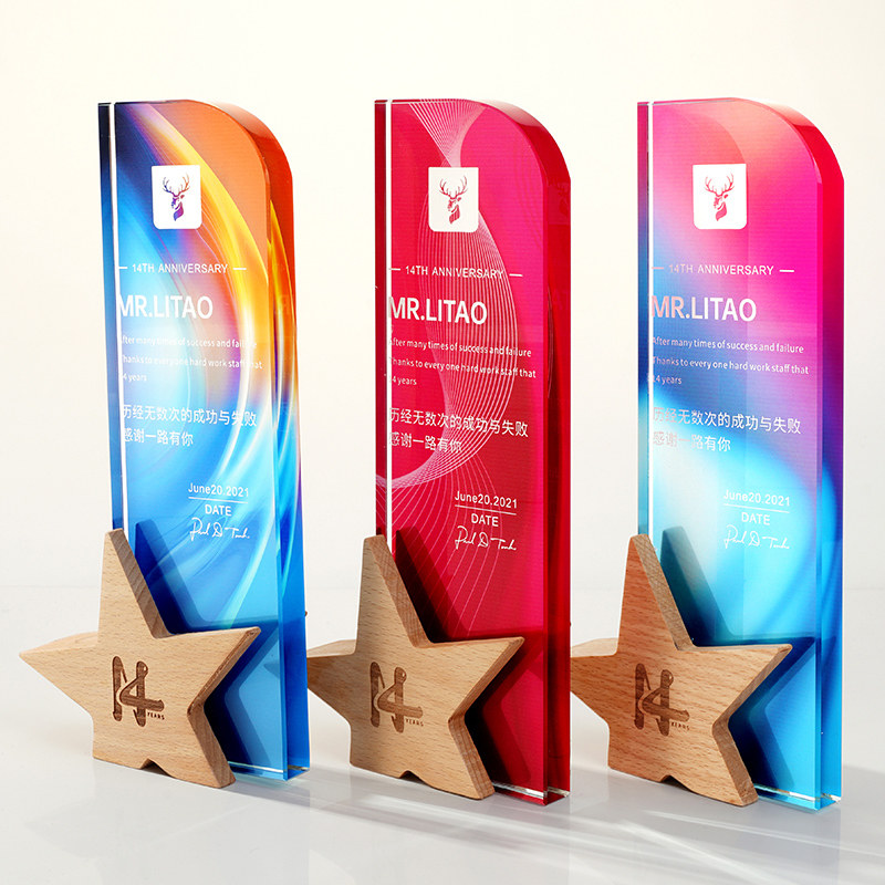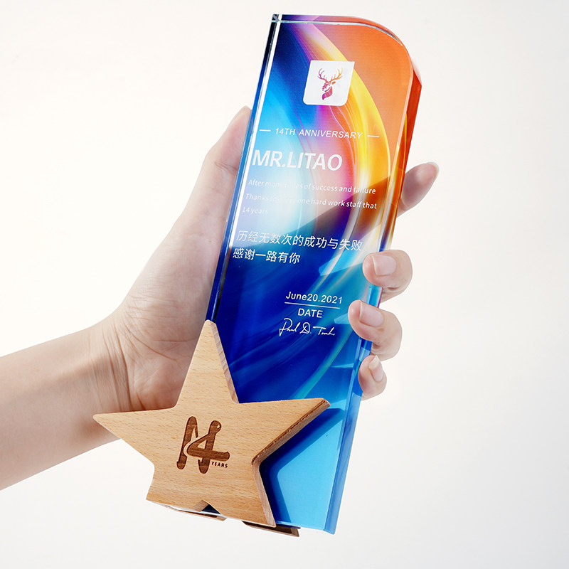 Crystal color printing trophy custom creative pattern custom lettering champion pin crown five-pointed star honor trophy production