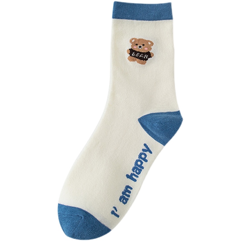 Japanese Lolita socks women's spring and autumn thin section pure cotton mid-tube socks blue college style cartoon bear cotton socks
