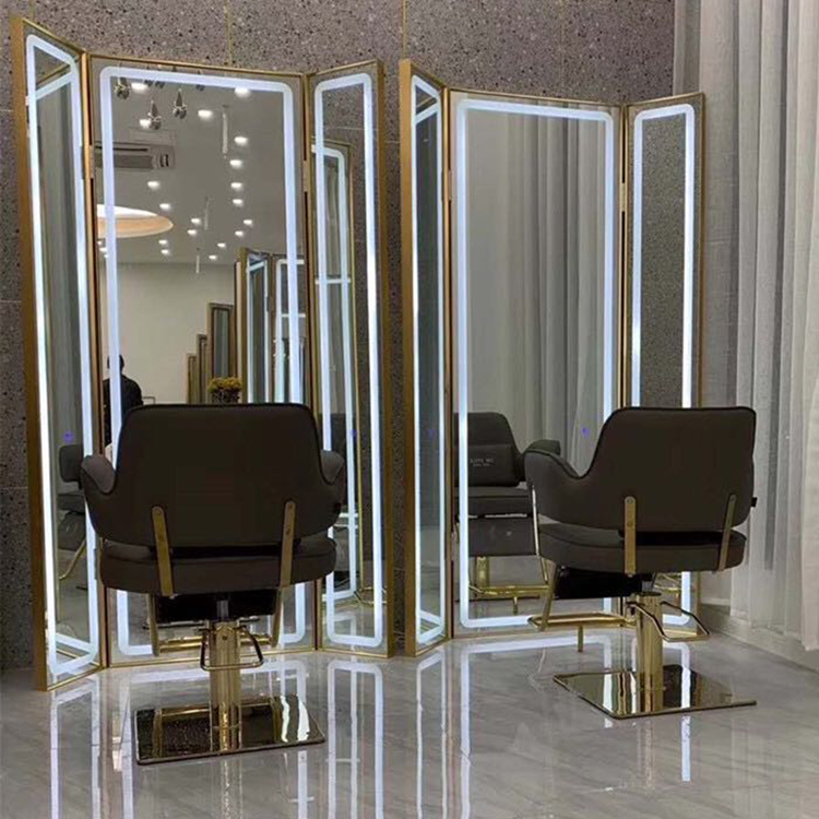 Net Red Hairdresse Shop 3AM Beauty Hair Lens Hair Salon Brief Stainless Steel Rose Gold Cut Hair Mirror Three Sided Fold Page Landing Mirror