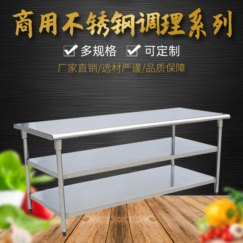 Stainless steel workbench double layer padding table kitchen board cutting table commercial workbench