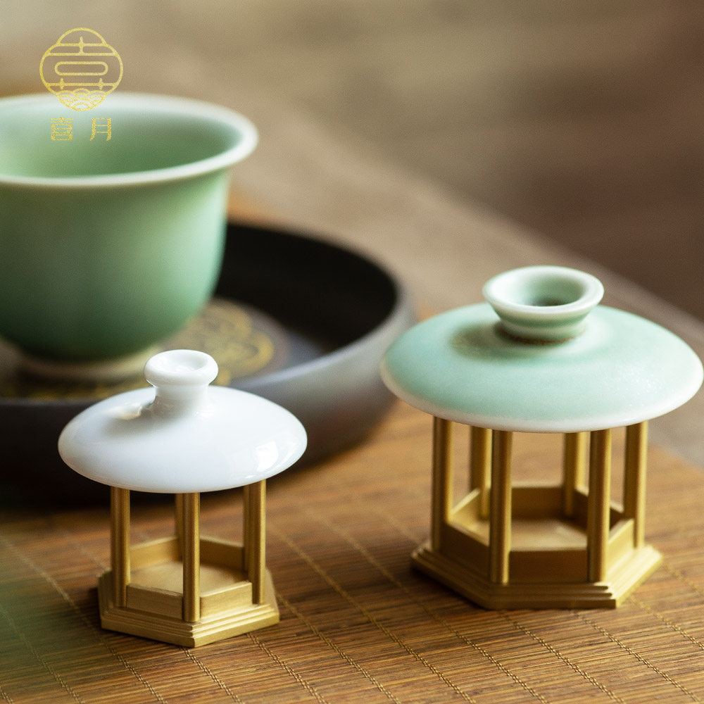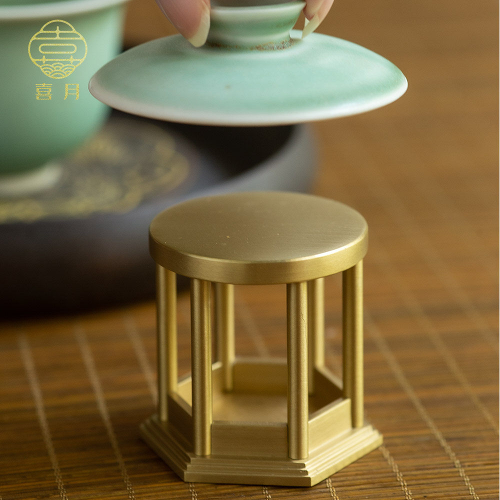 Happy Moon Pure Brass Cover Set of Purple Sand Pot Kung Fu Tea Road Teapot Cover Bowl Tea Cup Lid TEA TEA WARE ACCESSORIES