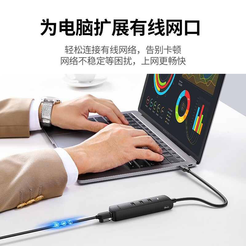 Green United USB Transfer Wire Network Card Expands RJ45 Network Route Interface 3-Port HUB Extension Wire Converter Docking Station