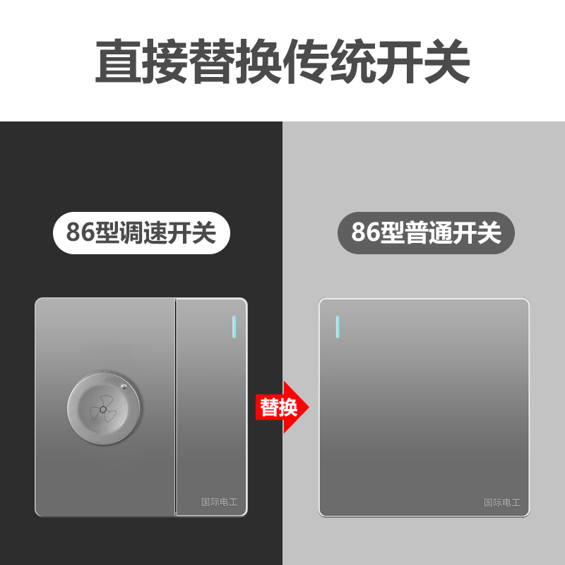 Type 86 ceiling fan speed regulator fan electric fan Promise variable-speed switch panel open single control with throttle switch integrated