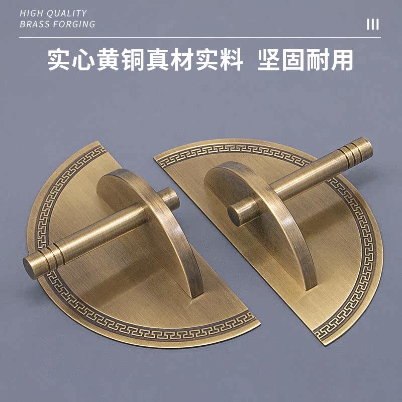 Chinese style brass cabinet door wardrobe drawer new Chinese style pure copper antique cabinet door golden round handle