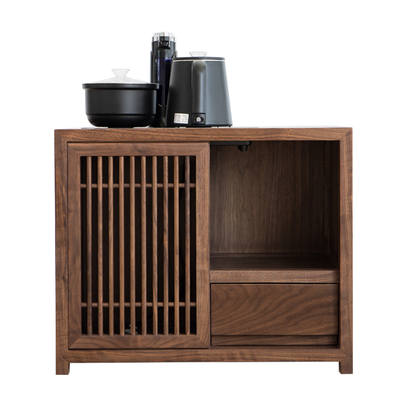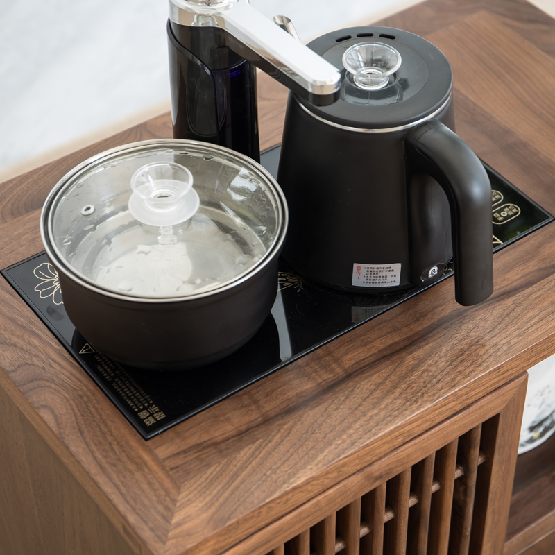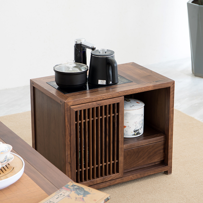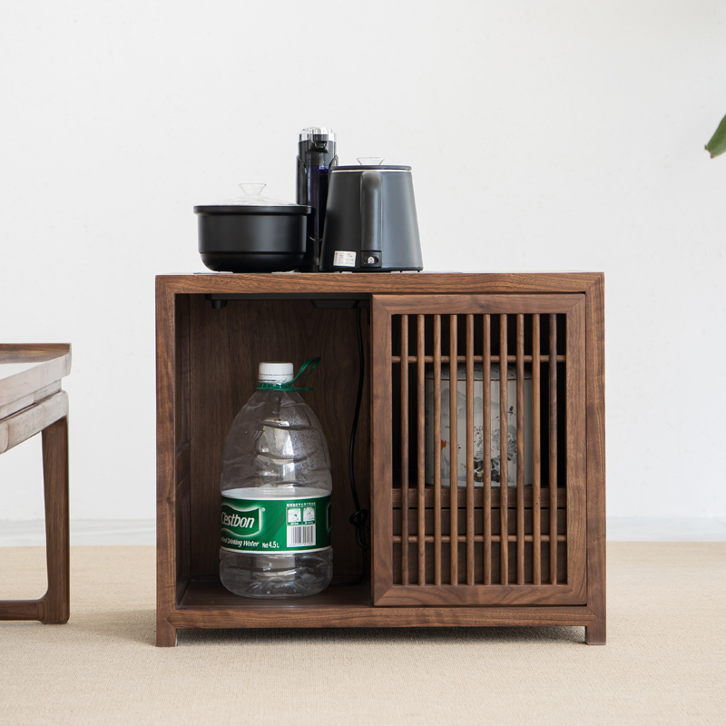 Tatami tea table cabinet New Chinese solid wood water tank living room black walnut wood side tea tank set bucket