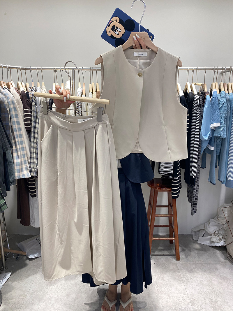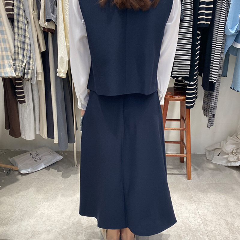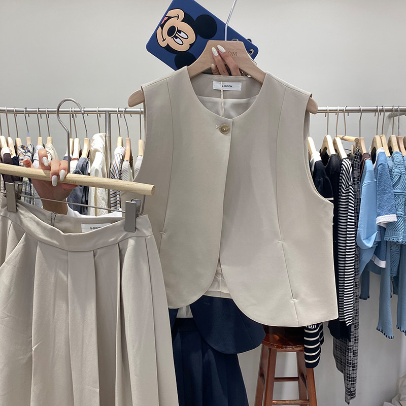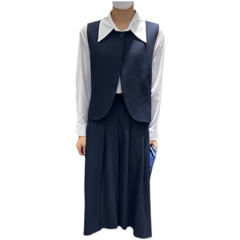2022 early spring new Korean Dongdaemun loose Hong Kong style casual vest vest jacket high waist skirt suit