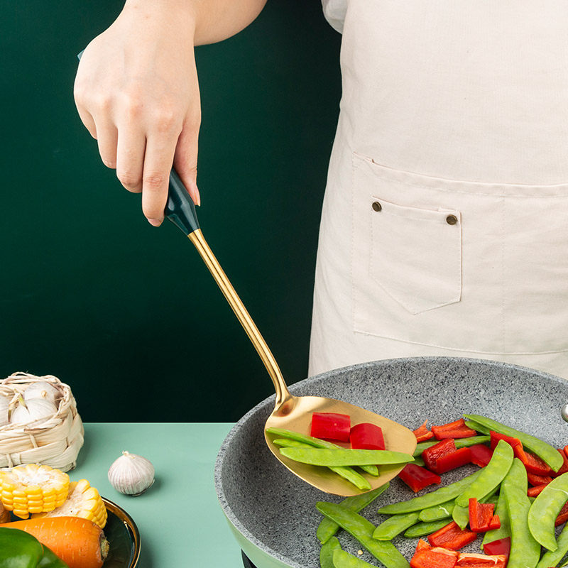 SSH Pan Shovel Home 304 Stainless Steel Fried Vegetable Shovels Kitchenware Set Lengthening Thickened Saute Spoon Soup Spoon Cookware Complete