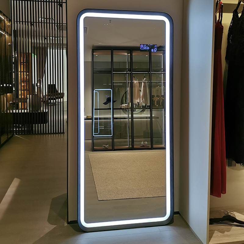 Full solid wood full-body mirror intelligent full body mirror with lamp body mirror floor mirror hanging wall-type high-end mirror