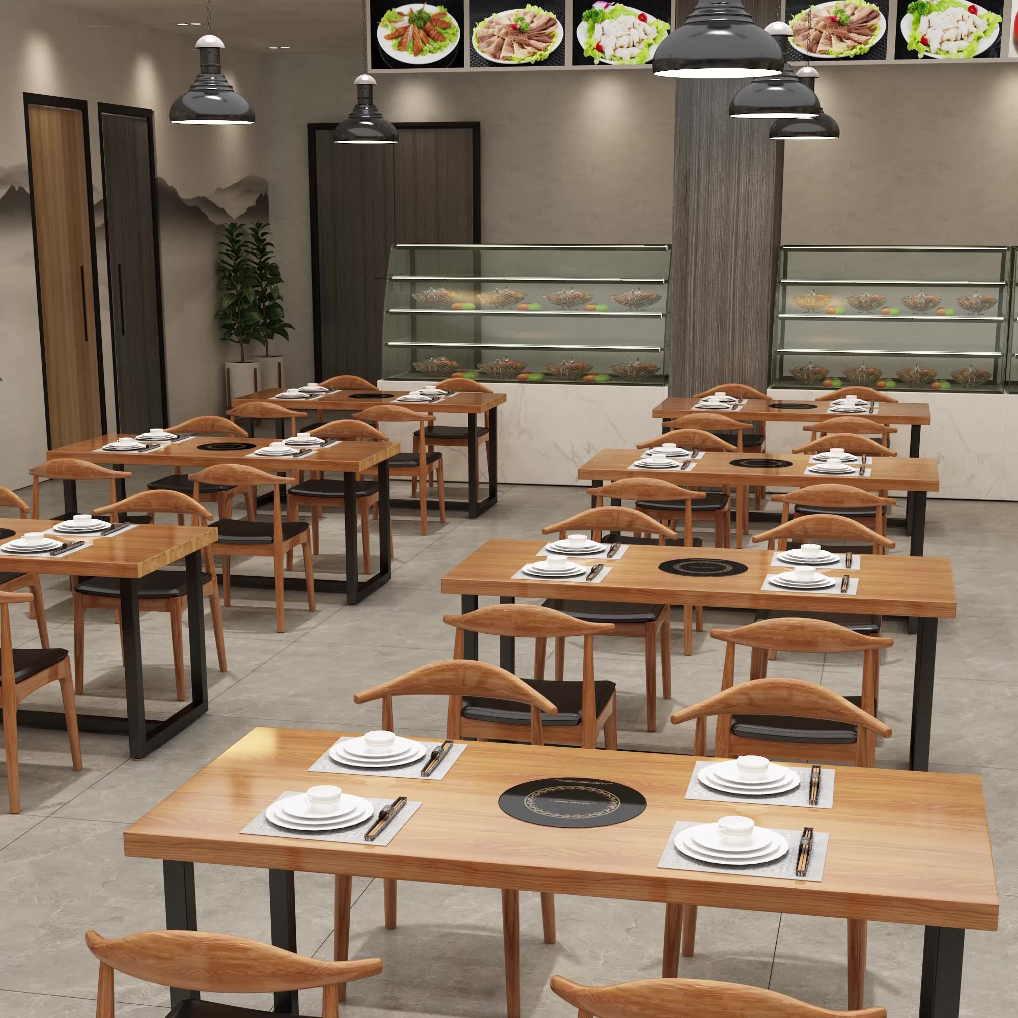 Custom Solid Wood Site Canteen Dining Room Table School Fire Pot Shop Dining Table And Chairs Coffee Table Rectangular Long Table Commercial Noodle House-Taobao