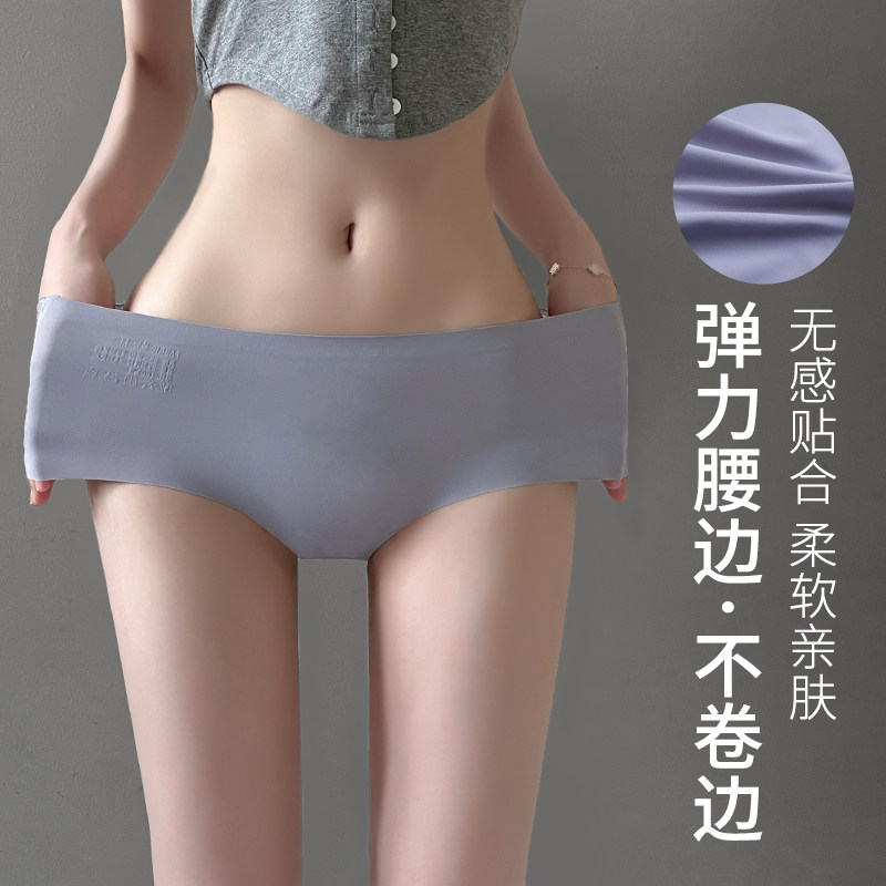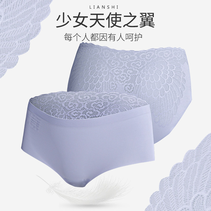 Summer thin section ice silk unscratched briefs female lace pure cotton crotch antibacterial mid-waist pants head breathable girl triangle shorts head