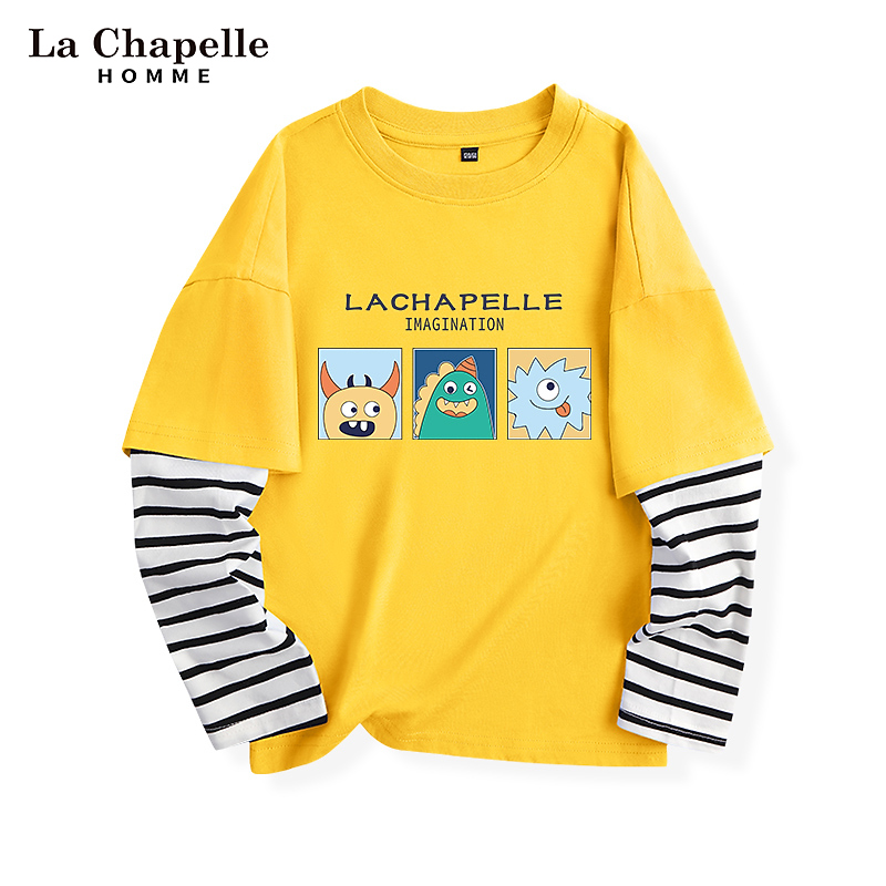 La Chapelle children's T-shirt spring and autumn thin section in the big boy's yellow fake two-piece long-sleeved top clothes fried street boy's clothing