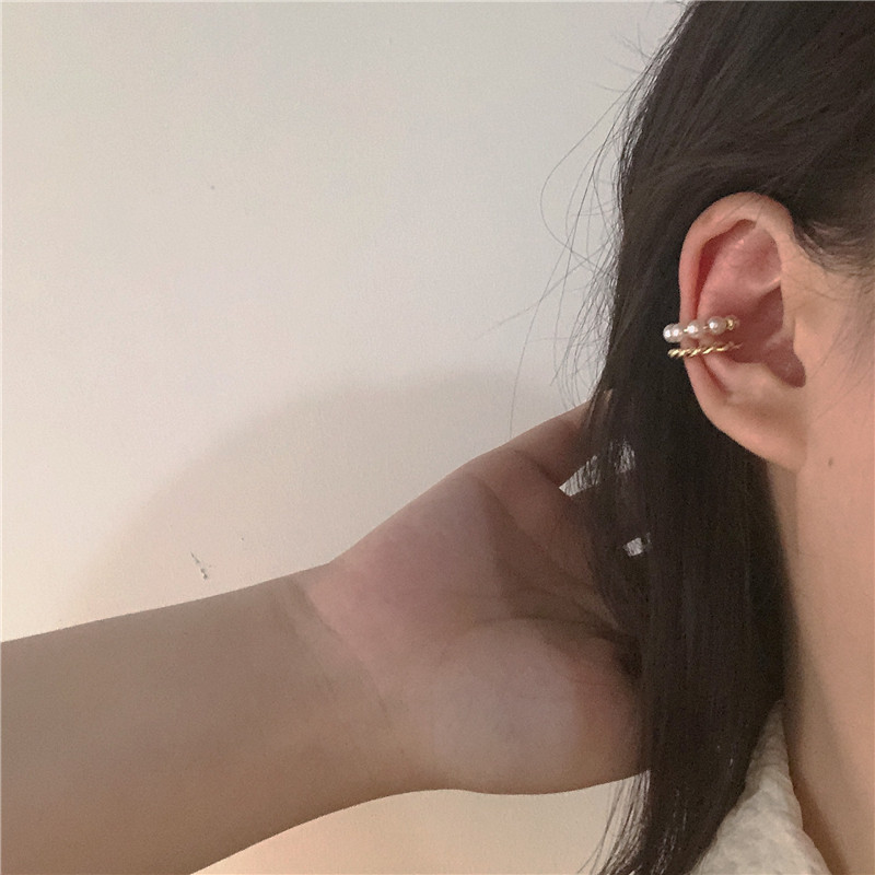 Double Layer Method Pearl Earbone Clip with Ear Clips Without Ear Clips ADVANCED SENSATION SMALL CROWDDESIGN EARRINGS WOMAN 100 LAP EARRINGS-Taobao