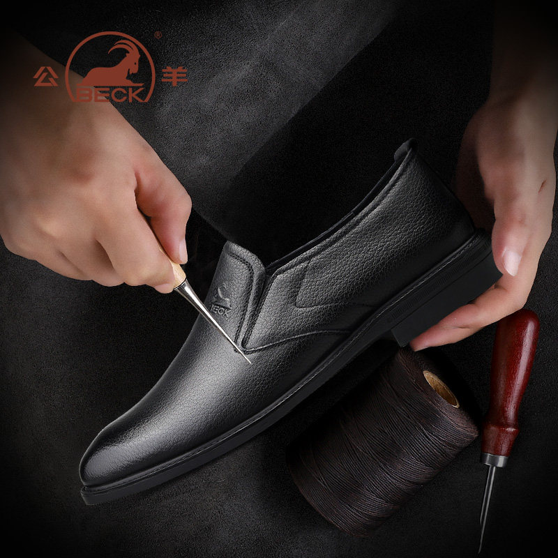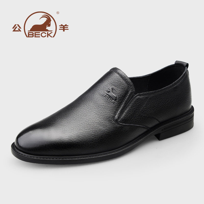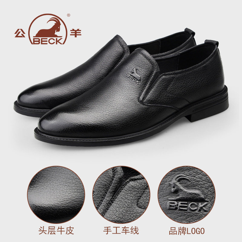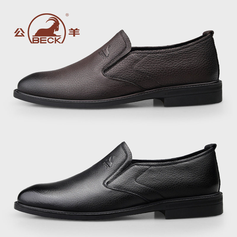 Ram Black Leather Shoes Men's Genuine Leather Business Dress Men's Casual Shoes Soft Leather Soft Sole Slip-on Cowhide Slip-On Shoes