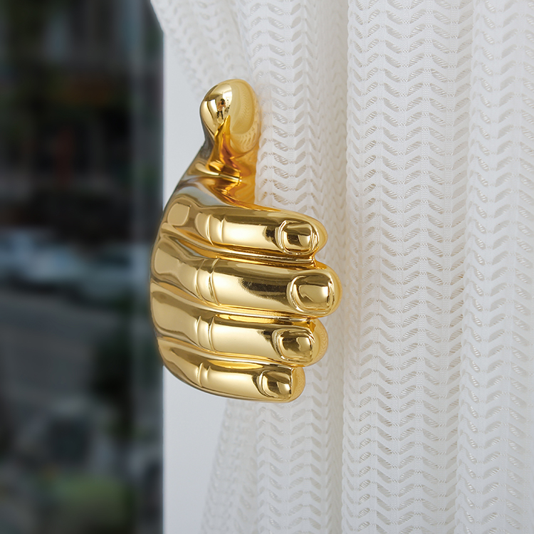 Creative Brass Curtain Hook Hand Type American Living Room Bedroom Retro Sheer Curtain Hook Light Luxury European Art Wall Hook