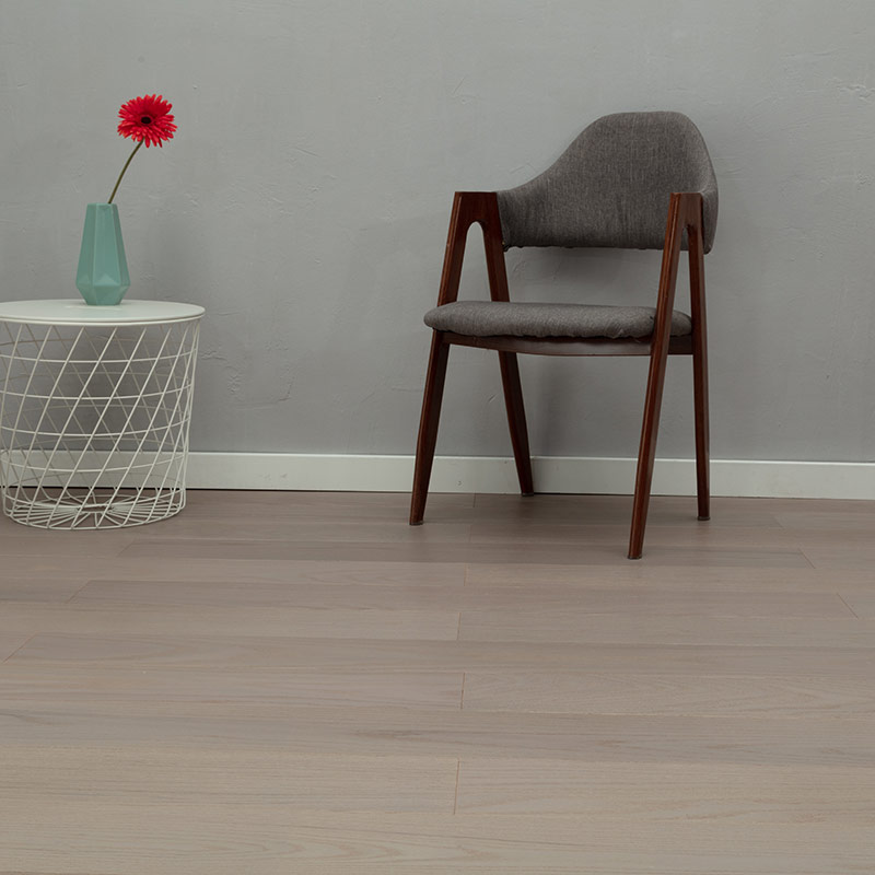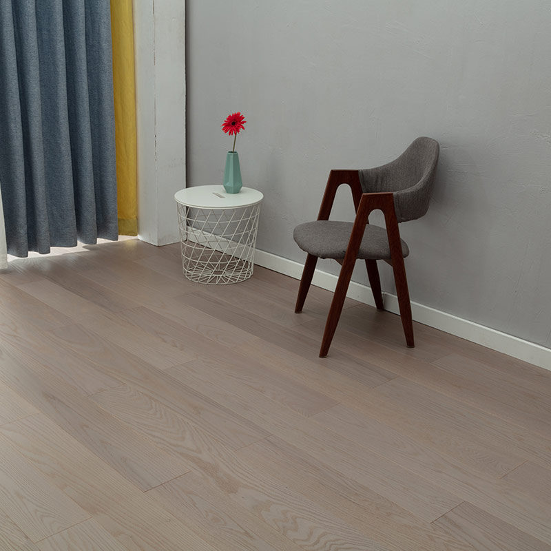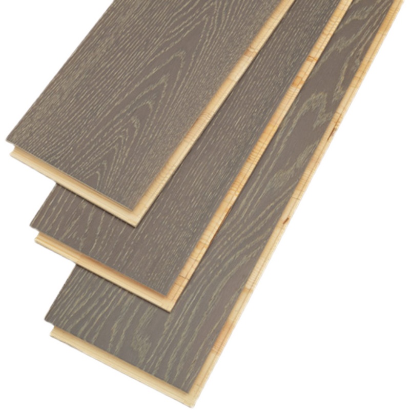 Oak wood household three-layer solid wood composite floor E0 grade environmentally friendly and ground heating metal lacquered light grey bedroom light lavish 15mm