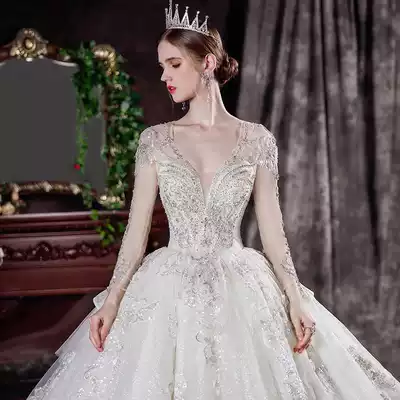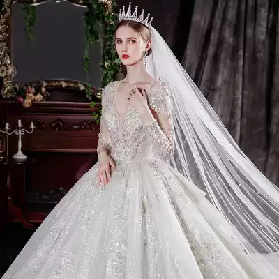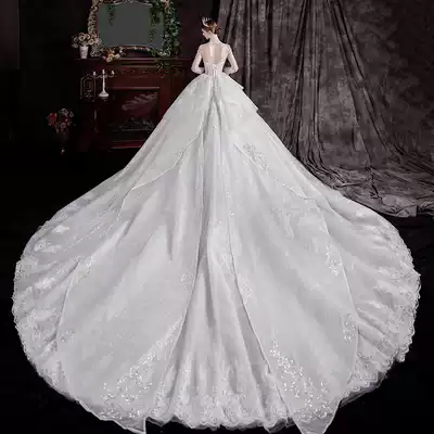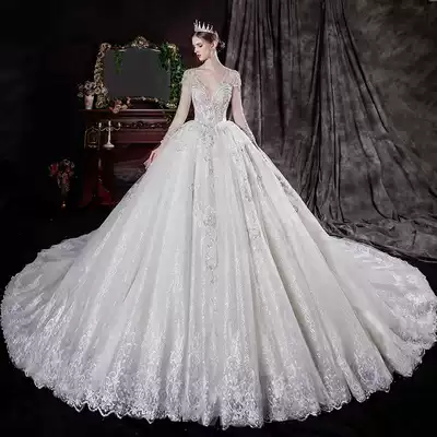 Long sleeve main wedding dress 2021 New temperament bride summer senior sense court style French slim big tail