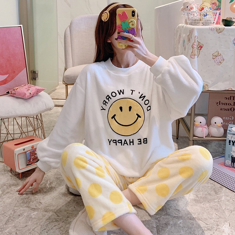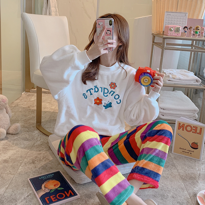 VIRRI CIAGA ~ Let comfort be a kind of hearty coral suede pyjamas woman autumn and winter thickened heating clothes pants