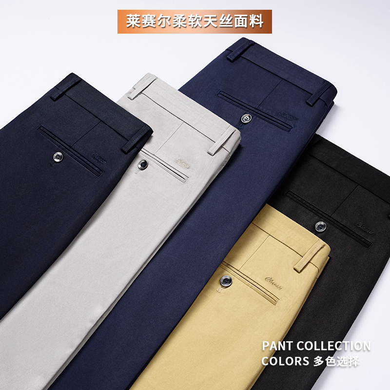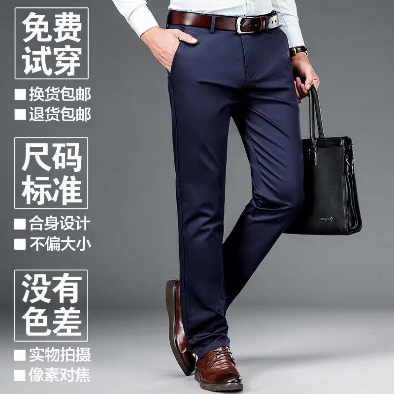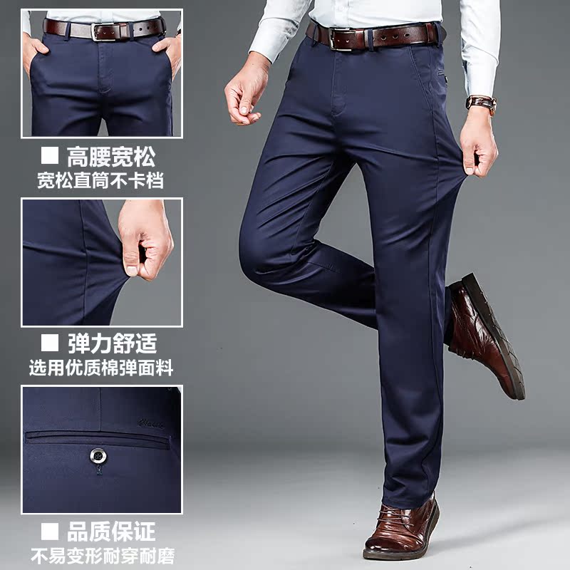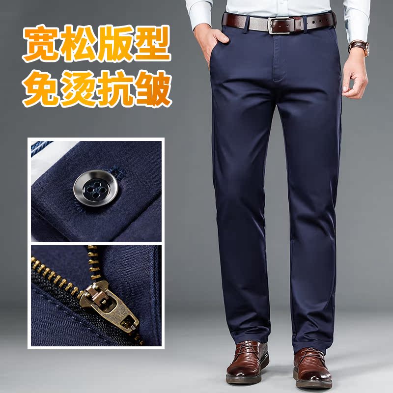 Spring Casual Pants Men's Loose Free Ironing Business West Pants Men Straight Barrel Pants West Suit Middle-aged Dad Long Pants Man