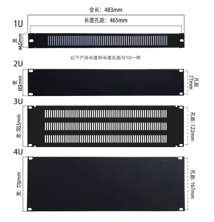 1U blind plate black (distribution mounting screw) 2U blind plate black (distribution mounting screw) 3U blind plate black (distribution mounting screw) 4U blind plate black (distribution mounting screw) 5U blind plate