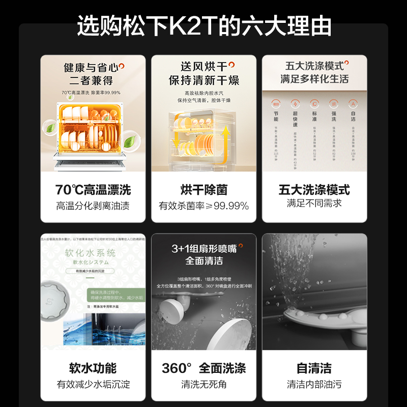 Panasonic dishwasher NP-A6SWK2T sterilizing household 5 sets of small automatic installation-free high-temperature washing desktop