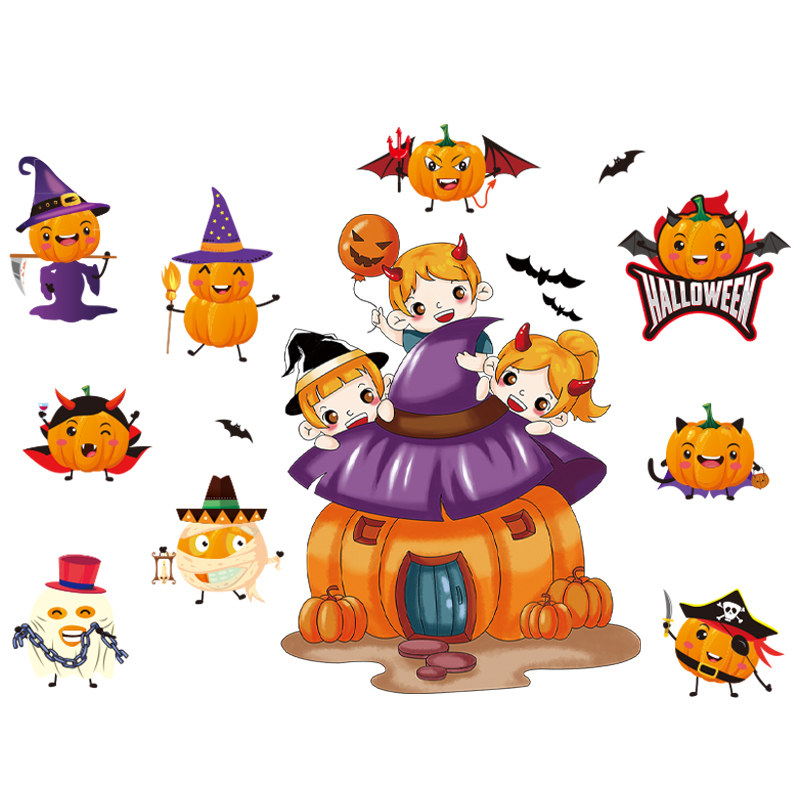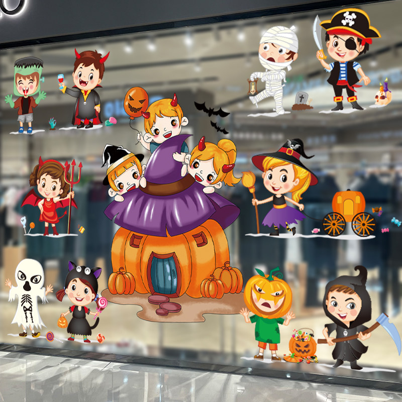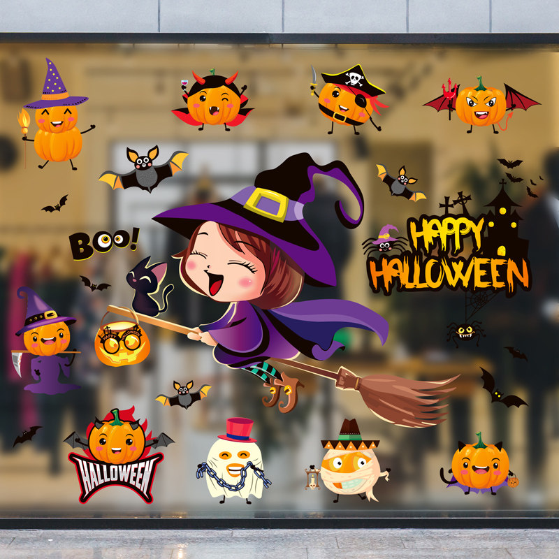 Halloween Pumpkin Light Glass Stickers Shop Window Adornment Arrangement Dress Children Window Stickler Window Applida Shop Storefront